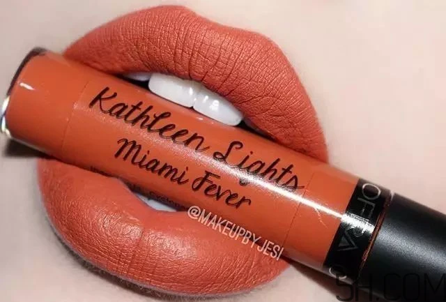 其实看到kathleenlights的这张照片,让人毫不怀疑MiamiFever就是一支南瓜色。照理说唇釉覆盖力很强,不太会出现颜色上的大偏差,但是看到下面这几张试色后…