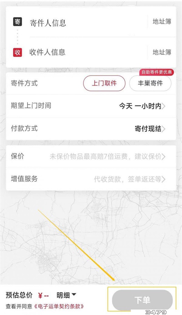4、选择“阅读并同意…”协议,单击“下单”选项,支付物流费用就能预约完成。