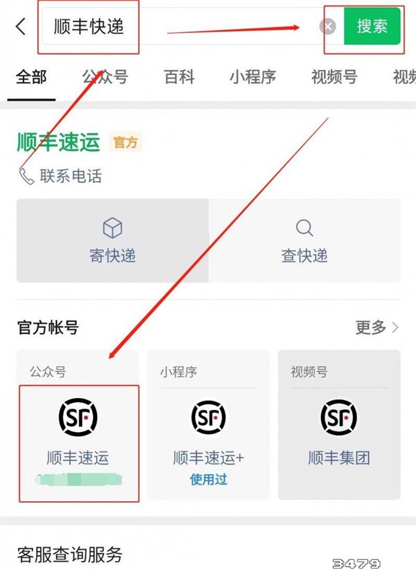 1、打开进入“微信”,搜索“顺丰速运”公众号,未曾关注的人需先关注该公众号;