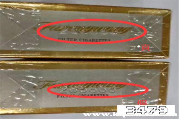 2、通过钢印细节分辨真假:正品的芙蓉王香烟包装的钢印字体是非常清晰的,同时钢印“288888”数字字体的深浅度是一致相同的;假的芙蓉王钢印字体的清晰度以及深浅度都是不同的。