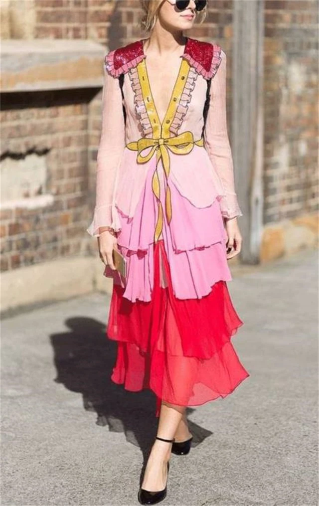 6. 彩虹色 总地来说皮肤黄的女生比较适合穿颜色比较亮眼,因为本身的肤色就比较暗沉,如果你还穿着暗沉的衣服就会像“一潭死鱼”一样。想这款彩色色的连衣裙,几个颜色组成,再暗沉的肤色都能提这些肤色提亮。