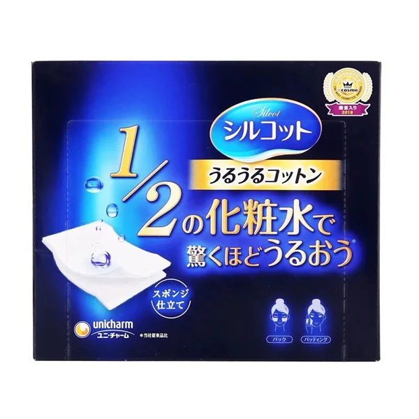 尤妮佳Unicharm 1/2省水化妆卸妆棉,洁面、卸妆、面膜纸三效合一。海绵质地强吸水力,省水不止一点点,滋润加满分。从此平价化妆水任性敷,高能化妆水安心敷。三层结构材料温和柔软,柔软亲肤又护肤。人性化压线设计,方便撕拉,半张化妆棉卸净整张脸。