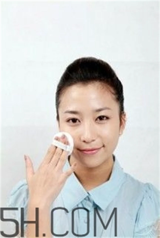1、粉底液之后用粉扑按压足量的散粉按压面部;