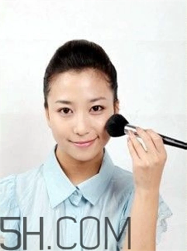2、用刷子扫去多余的散粉,使之与肌肤贴合,尤其注意堆积在嘴角、眼角的散粉,要注意动作轻柔。