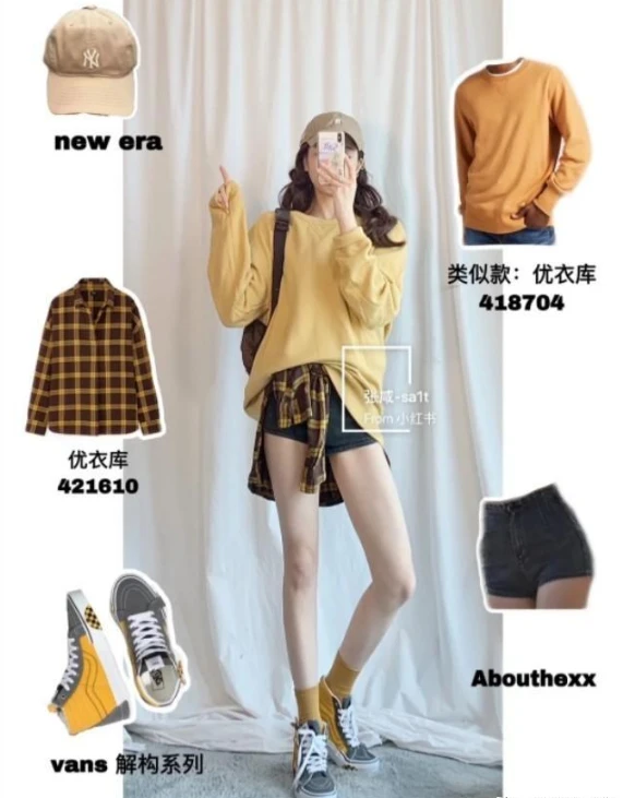 天气越来越热,卫衣和短裤的穿搭也是特别适合高帮板鞋搭配的。露出大长腿真的显瘦又显高,整套穿搭颜色的选择都是黄色系,同时利用格纹衬衫系在腰间打造出层次感。搭配鸭舌帽和背包是完美的出游穿搭。