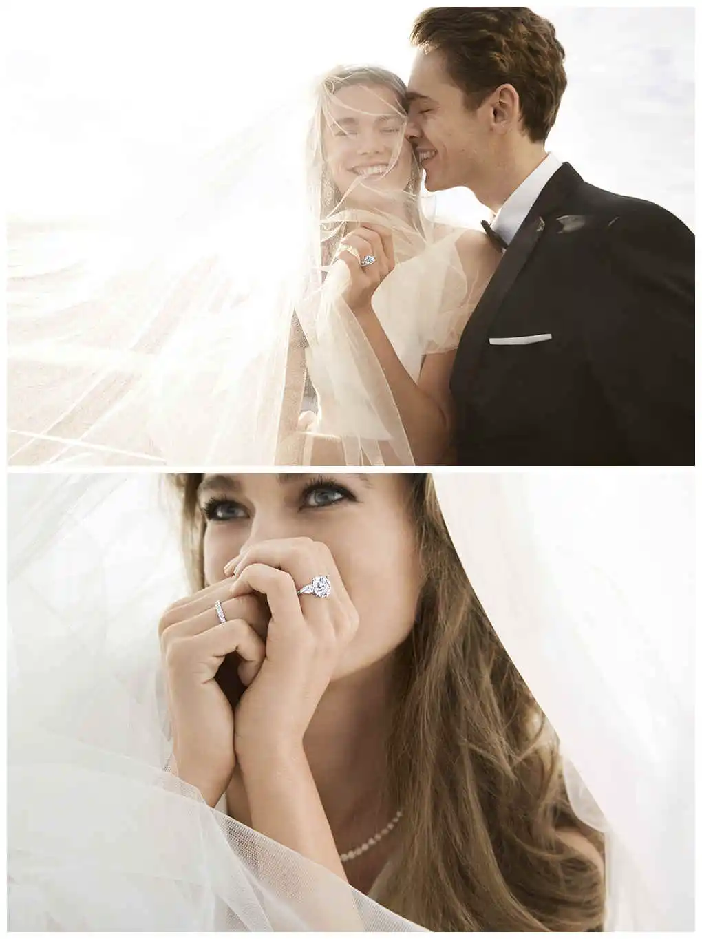 散发时尚优雅氛围的广告捕捉新娘子与挚爱共谱人生新篇章的幸福光芒,精雕细琢的格拉夫婚嫁珠宝完美衬托她温婉优雅的气质,从经典婚戒和订婚戒指、璀璨后冠、项链、耳环和手镯,全部也镶嵌由格拉夫家族成员亲自挑选的美钻。除了经典隽永的设计,新广告也展示Threads和Bow系列等瑰丽新作。这些优雅时尚的珠宝由格拉夫伦敦工坊的工匠大师匠心手制,为新娘造型更添优雅柔美,同时透现英伦气息。