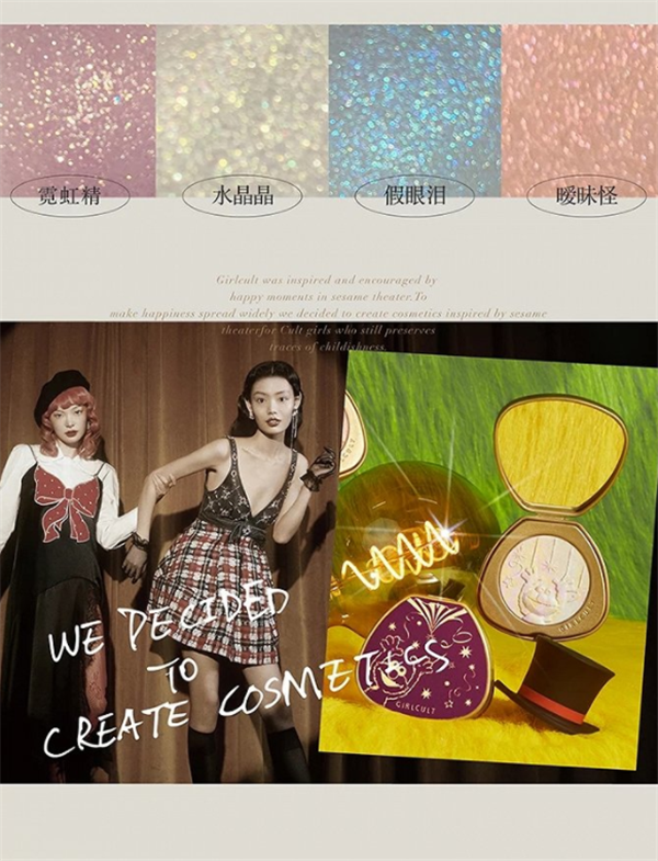 以大胆设计和有趣创意出名的国货彩妆Girlcult在之前出品了一系列彩妆之后,这次Girlcult又与芝麻街合作推出古灵精怪、趣味爆棚的芝麻剧场彩妆系列。此次系列的灵感源于芝麻街中主角独特的个性和色彩,充满了戏剧的怪诞感。系列包含了腮红、唇霜、唇蜜、高光、眼影和粉饼等多种单品。