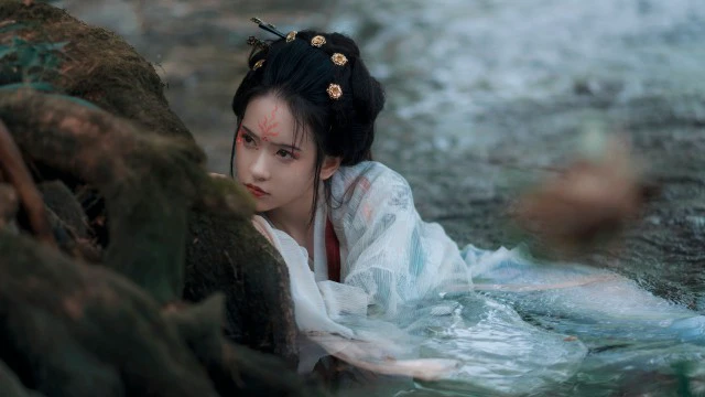 为了不让假睫毛看起来太夸张可以只贴后半截的假睫毛,这样的出来的效果也不会更加贴切汉服妆注重眼尾部分的效果。接着用睫毛膏将睫毛刷一遍,让假睫毛和真睫毛贴合在一起,前半部分的真睫毛和下睫毛也要刷一刷。到了这里,整个眼妆就完成了,如果你喜欢往脸上画一些花黄,也可以画上去,这样会让你的古典眼妆更精致好看。