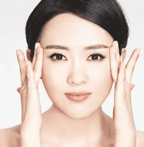 用手轻抚脸部肌肤,由下巴自至太阳穴,往上刮;眼部也是如此,由鼻翼两侧向太阳穴向上刮;额头,是由中间往两侧刮。