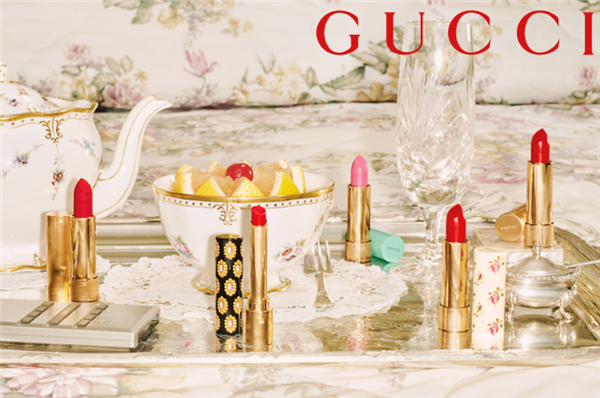 近日,GUCCI Beauty 推出了一个新的唇膏系列 Rouge De Beauté Brillant,外形摒弃了一贯的粉色风格,以黑色为主调,加上复古味道的印花和金色的管身,显得十分华丽。