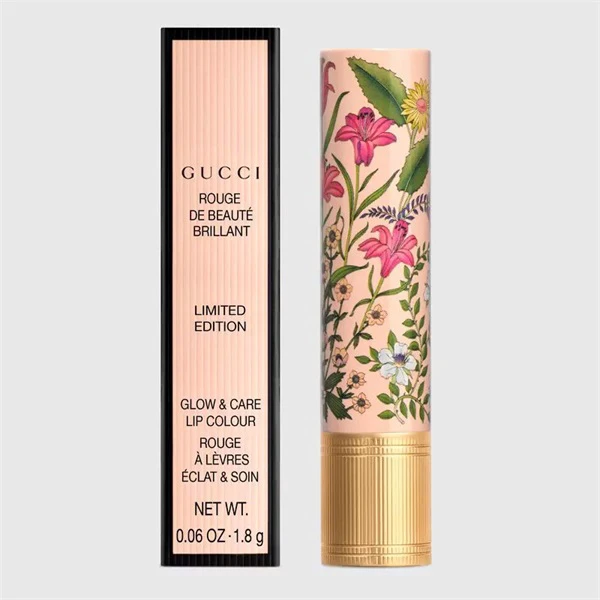 Gucci Beauty 推出 Rouge De Beauté Brillant,一种独特的唇色,具有独特的优势。作为透明和缎面唇膏的中间产品,混合持久的双重作用配方可提供 24 小时的水分和美丽的色素光泽。配方中含有滋养和抗氧化成分,奶油质地突出并保留口腔的自然美感,让双唇看起来更饱满饱满。粉红色的外盖被包裹在细长的金色子弹中,饰有品牌的 Flora 图案。