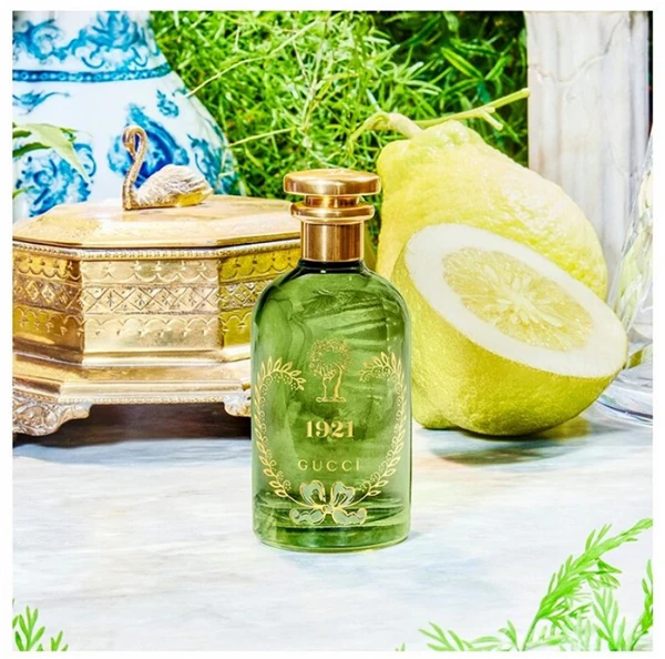 该款香氛以鲜明的橙花油为主香调,融入源自佛罗伦萨的香水柠檬果香,以致敬这座百年前孕育出Gucci的美丽古城。它将橙花油的优雅气质和植物气息与香水柠檬迸发出的清新完美融合,使香气更加的清爽。除此之外,带着泥土气息的橡木苔使得香氛更为浓郁、热烈,同时拥有无与伦比的持久性,这也使得1921成为一款不分性别、四季皆宜的独特香氛。绿色玻璃瓶的设计使这款香水显得神秘高贵,而瓶身上镌刻的金色Gucci字母标识和装饰花纹则醒目又精致。
