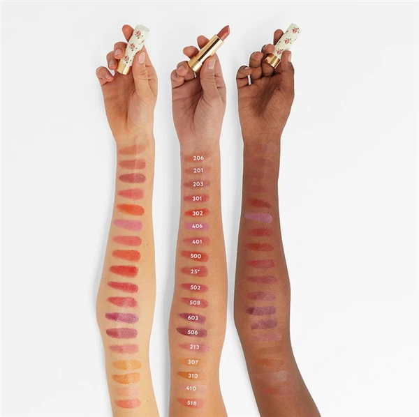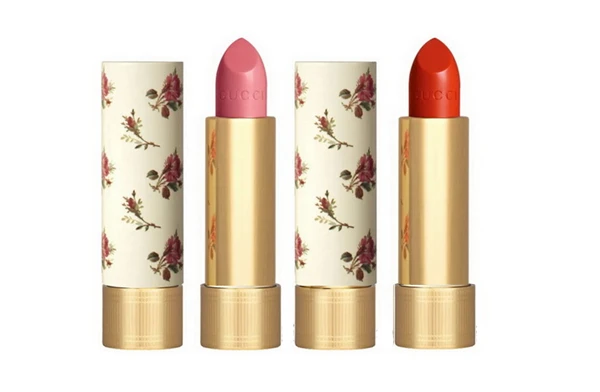近日,Gucci 推出了 5 款全新色调的唇膏,带有亮粉的 Rouge a Levres Voile Sheer Lipstick。该系列中的所有唇膏都具有超轻质地,保湿润唇,带有半透明光泽和闪亮效果,上妆效果极好。除此之外,还散发出带有紫罗兰色和果味的花香。口红采用复古风格的金色表壳,象牙色漆面饰有瓷器装饰和精美的玫瑰花蕾印花。