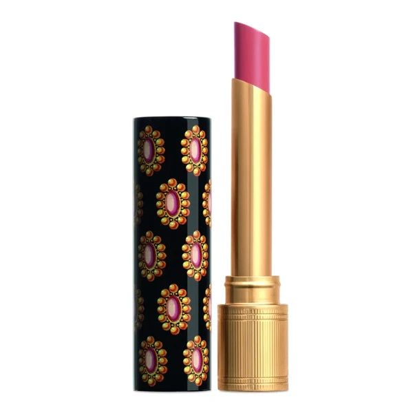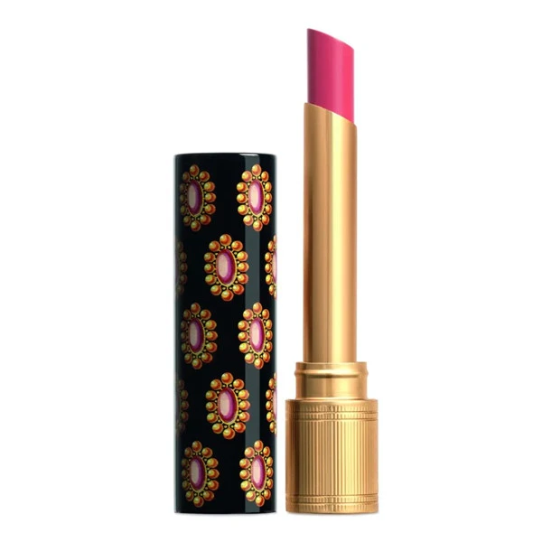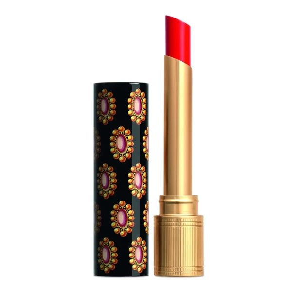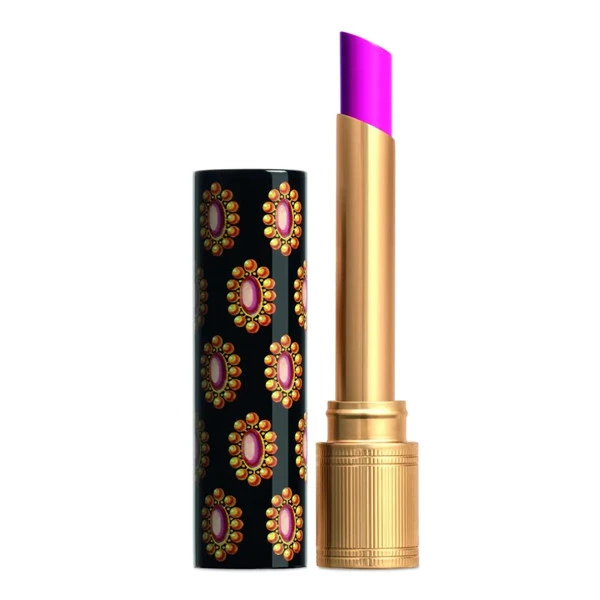 Gucci 倾色琉光唇膏由鲜红、珊瑚粉、玫瑰色和自然色系等15种亮泽而美丽的色调组成,并以焕然一新的全新设计颂赞此款唇膏的独特之处:优雅纤长的金色管身,搭配独特金色胸针印花的黑底唇膏盖,此印花灵感来源于古董玩物,再次显现Gucci 创意总监 Alessandro Michele对复古老物件的无比热情。