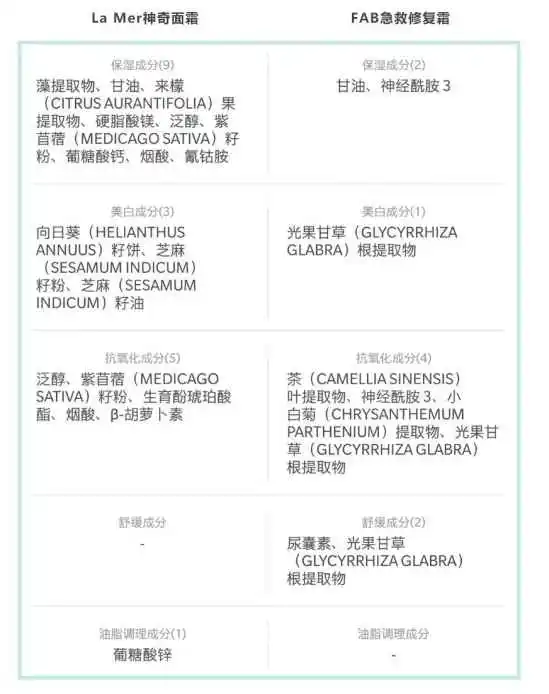 两者相比,lamer贵在含有昂贵的深海海藻提取物,但好在FAB有神经酰胺撑着,性价比很高了。