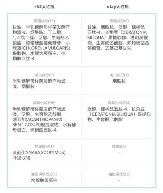 从成分来看,SK2多了专利的pitra成分,自然会有更好的效果。但经济不允许,还是可以用olay来替代改善一下的。