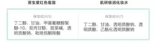 两个都含有透明质酸、甘油等经典的保湿成分。个人认为,一个基础保湿化妆水,一两百绝对够了!要想一下我现在还用着50多块的无印良品呢,同样很赞啊hhh~