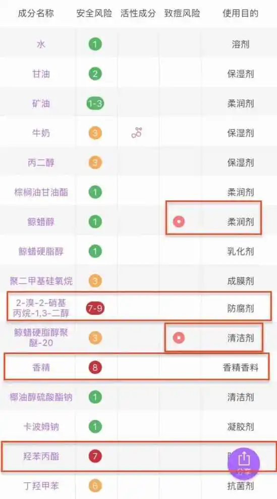 另外,这款鲜奶乳液依然存在防腐剂和致痘风险的成分,所以敏感肌还是避开吧。