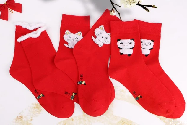 过年穿红袜子预示着新的一年可以走红运,可以辟邪消灾,喜庆,给人带来安全感。而平常穿红袜子,则有“踩小人”的寓意。