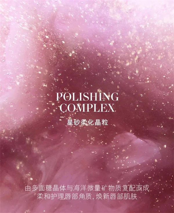 星砂柔化晶粒,由多面糖晶体与海洋微量矿物质复配而成,柔和护理唇部角质,焕新唇部肌肤。