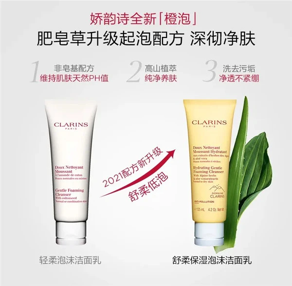 娇韵诗温和泡沫洁面膏,丰富细腻的泡沫,温和并彻底地去除污垢、彩妆与多馀油垢,同时不损害肌肤天然的保湿平衡。椰子萃取有助滋养并柔化肌肤,使肌肤展现光采。以植物萃取精华和柔和的清洁剂为主要成份,通过皮肤专家测试。