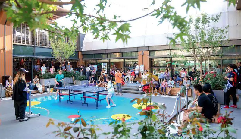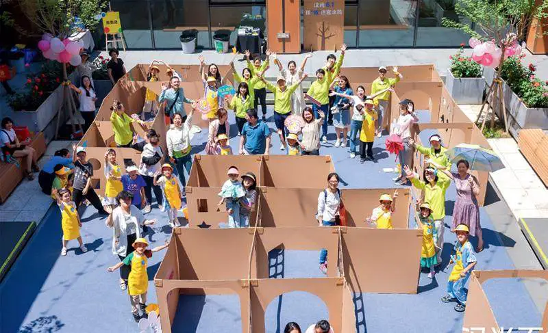 除此以外,汉光百货还在闲置区域上做文章,把有限的空间充分利用,将8层打造成露天庭院,增加小型喷泉流水,放置免费乒乓球台,客人可以边吃饭边看风景,或者饭后到庭院小憩,大幅提升了体验感。花园面积虽不大,但成功地重塑了商业空间,同时也为互动活动提供了场地,六一迷宫涂鸦、童装走秀、儿童义卖市集、乒乓球趣味赛、安踏儿童训练营等都吸引了很多客人参加,给汉光增加活力。
