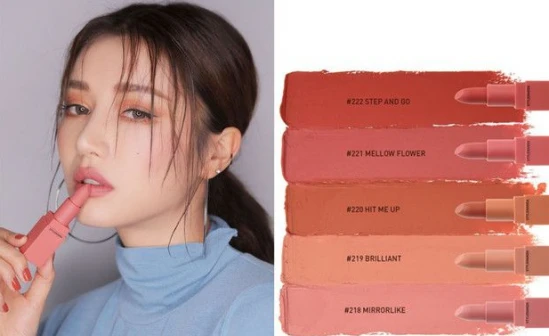 3CE 的雾面唇膏以色号#218~#222此5款最为热卖,带有粉色调的裸色雾面唇膏系列,擦上後的气质相当甜美;美中不足的是这款唇膏偏乾,建议涂擦前可以先使用护唇膏打底。推荐色号#221 MELLOW FLOWER,带有玫瑰粉的色泽擦起来气色更显红润