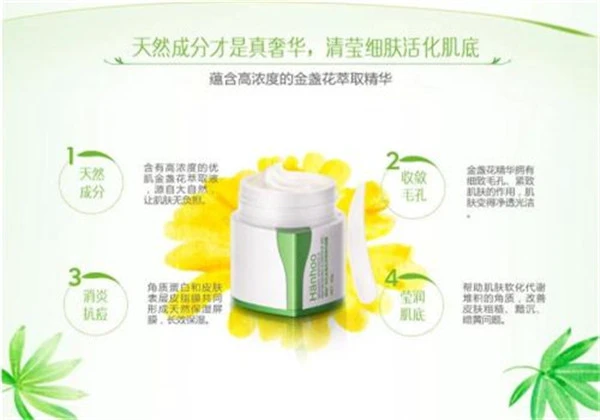 韩后金盏花完整提取天然有机金盏花精华,还含有甘油辛酸酯、透明质酸钠。平滑肌肤,净透补水清理肌肤!促进皮肤的新陈代谢,尤其针对干燥的肌肤,有高度的滋润效果,镇定肌肤,改善敏感性肤质。