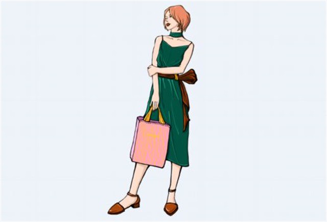 将腰带左长右短缠在腰上,以Z字形将腰带长的一段折叠,做成蝴蝶结形状。将短的一侧向外包住半成品的蝴蝶结,并把“小尾巴”塞进“Z字形”。稍微整理一下,蝴蝶结形状的腰带就系好啦!