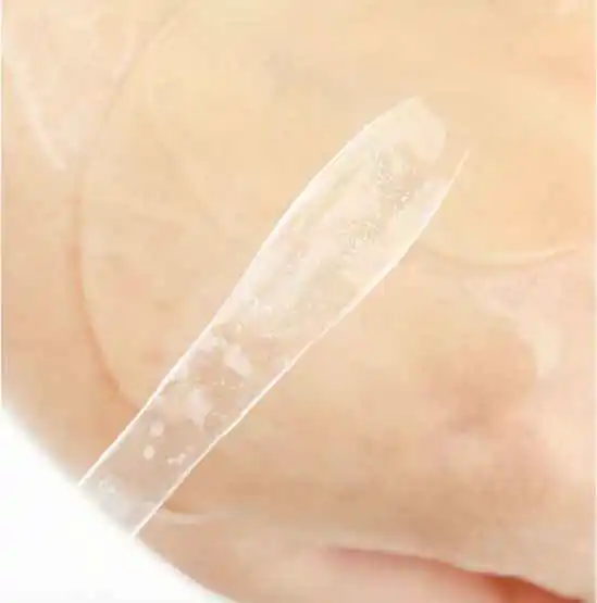 取出来可以看到,眼膜上是满满的精华,很水润。可以贴合在自己眼部,颈部,抬头纹等处都可以。15分钟后,取下眼膜即可!