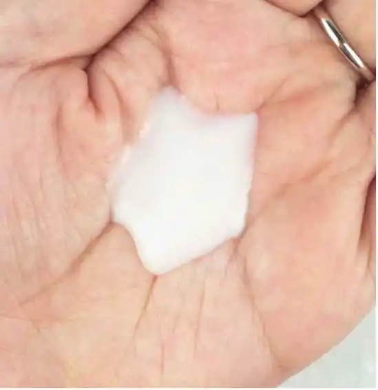 护肤素跟一般的护发素相比,要比较稀一点。挤在手里流动性很强。涂抹在发梢上轻轻按摩一会,用清水冲洗掉。头发就超级顺滑。