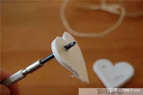 1、拿出白色粘土,先用模具做出心形,然后在它上面戳孔。