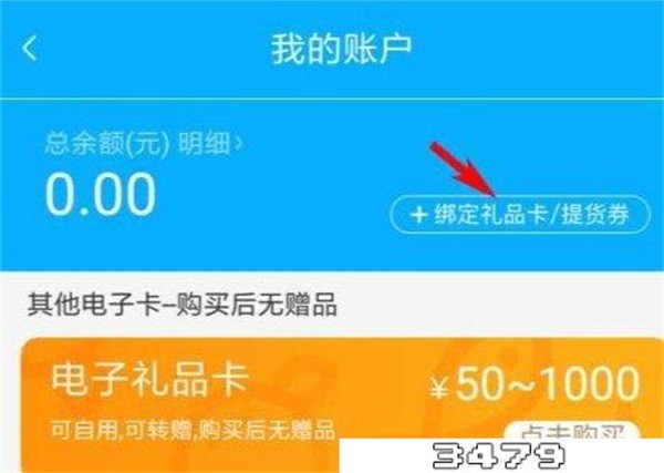 4、跳转到我的余额页面后,就点击【绑定礼品卡】;