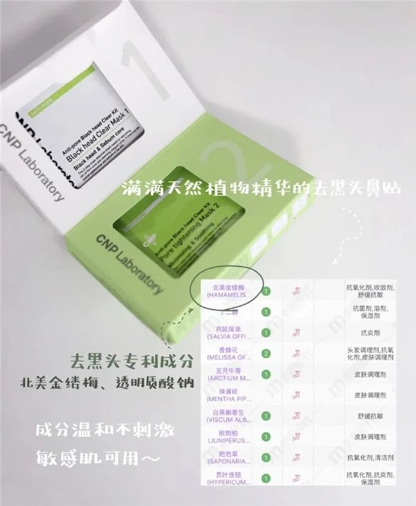 而这款cnp鼻贴的优势就是先溶解毛孔中的皮脂,使黑头松动,浮出,可以被轻易到处,在收敛毛孔,平衡水油,舒缓镇静