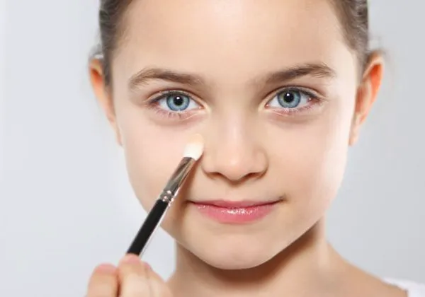 第三步 再用极少量的遮瑕膏叠压,可以把遮瑕范围稍放大,但若是只有眼头黯沉,则要避免大面积遮瑕,否则会因色差反而让眼下更加黯沉。