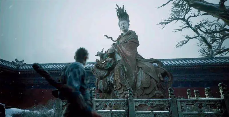 再回归到游戏本身,精湛的制作水准是确保玩家游戏体验的前提,很多游戏的细节隐藏在树叶后,或是石缝里,再或者是主角奔跑途中那一闪而过的瞬间。这些动画都是由国内顶尖动画艺术家和工作室完成,包括有奥斯卡背景的FliiipDesign、东京动画奖得主润物定格,国动迷熟悉的大火鸟文化、绿怪研,以及在日本动画圈打拼多年的黄成希、周浩嵩等。开发团队采用了虚幻5引擎和英伟达的光线追踪等先进技术对真实的寺庙、佛像、森林、岩石等逐一进行扫描建模,再经过加工美化运用到游戏中,形成逼真的视觉效果。整个过程最短也要数月时间。比如,在扫描第一版重庆大足石刻时,建模一度达到夸张的12亿个面。再比如,一个在游戏中不太起眼的经幢,现场扫描时就要拍下8000张照片。这背后耗费的工作量和人力物力成本可见一斑。
