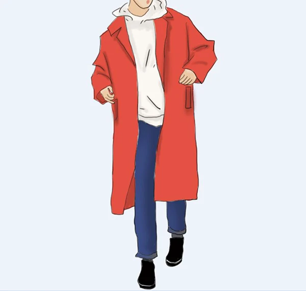 大红色长款皮衣搭配一条紧身保暖的黑色打底裤,不仅超显身材而且还非常保暖哦。