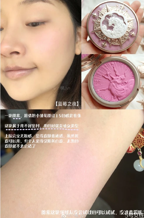 网友:最近又淘到了一个超级超级少女的宝贝!没错就是这款花知晓独角兽腮红!!外壳设计真的非常戳我,真希望她家能出粉饼呀!!!这样外出补妆掏出这种包装,很有魔法少女的感觉呢!