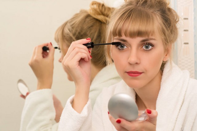 大家在使用睫毛膏的时候一定不要用力的将刷头拽出来,而是得轻轻的将睫毛膏的刷头轻轻的旋转出来,然后把睫毛膏蘸薄了再刷。对于许多新手来说每次画睫毛的时候都会出现苍蝇腿的情况,所以建议大家在刷眼影的时候可以以画“Z”字的方式来进行,而且少量多次的刷,这样睫毛就能刷得有又长又密又不会有苍蝇腿。