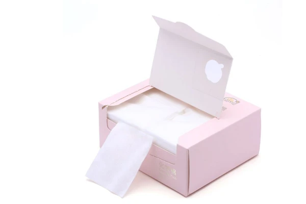 这种化妆棉则相对较薄,触感较粗,但由于吸水力强,所以化妆水的用量比较省。