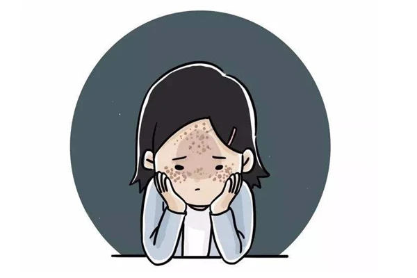 黄褐斑也称肝斑,为面部的黄褐色色素沉着。多对称蝶形分布于颊部。多见于女性,血中雌激素水平高是主要原因,其发病与妊娠、长期口服避孕药、月经紊乱有关。