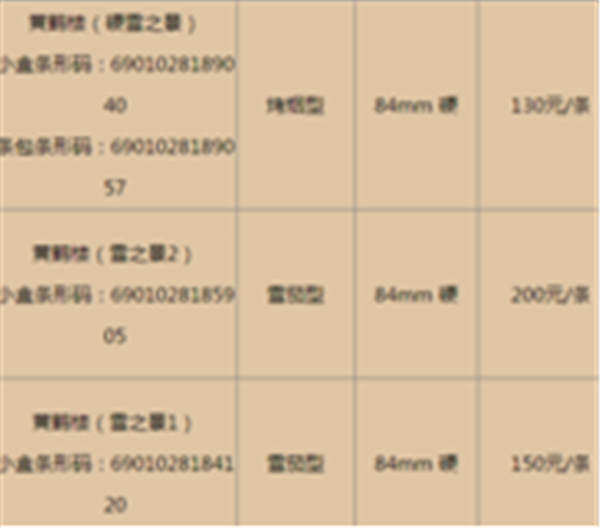 黄鹤楼细支当中,黄鹤楼(天下胜景)和黄鹤楼(漫天游)还有黄鹤楼(梯杷),是人们经常会选择的。其中天下盛景的售价一般都在25元一盒,250左右一条。而黄鹤楼漫天游是比较经典的款式,分为硬盒包装和软盒包装两种,这两种的价位都比较高昂,目前已经被炒作到价格85元左右一盒。