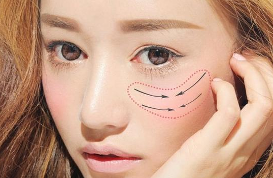 打造方式:它不再需要微笑起来画了,整个腮红的面积变大,鼻翼两侧,双眼底下,用腮红以“丿”(撇)“乀”(捺)交叉涂抹,腮红位置不超过鼻翼,形状也不再是一个规则的圆,看上去会像一个用毛笔画的,最后以轻扫的方式晕染开来,使其非常自然的呈现在两颊上。