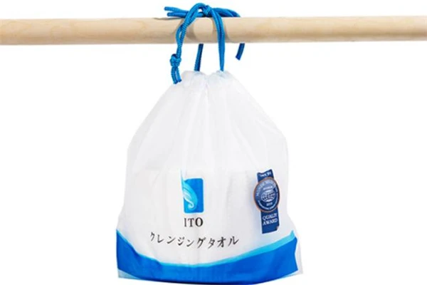 Ito洗脸巾比较常见的包装是那种松紧口、抽带式的。这种包装用的时候,直接拉开袋口取出里面的洗脸巾即可使用。洗脸巾是卷筒式的包装,和我们平时的用的卷筒纸使用的方式一致。
