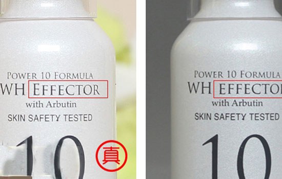以那行加了红框的英文大写字母“WH EFFECTOR”为第一个辨点,正品的英文字体第一个字母”E”相对大一点,且整体颜色明亮,而假货的英文字体印刷却是一样大的。
