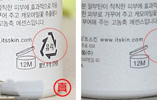 韩国正品瓶子背面印有商品的韩文说明,底下印有生产编号与生产日期,这些文字都会相当清晰明了。假货文字却很乱。