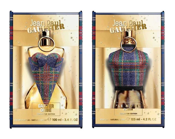 随着节日的临近, Jean Paul Gaultier每年都会推出一系列采用特别设计图案的节日礼盒,每年都有不同的主题。今年,节日礼盒以醒目的格纹印花为特色。此外,还推出了两款限量版节日香水: Jean Paul Gaultier Divine珍藏版,其包装盒饰以闪亮的格纹紧身胸衣;以及Le Male Elixir珍藏版,其包装盒饰以闪亮的格纹套头衫,瞬间唤起人们对 Gaultier标志性美学的联想。