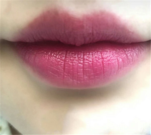 厚涂的梅子色非常的冷艳,紫调比较明显,非常的显白,但是这种涂法不适合黄皮,会很显老。但是白皮使用会显得更加白,而且是非常显气场的一个颜色。