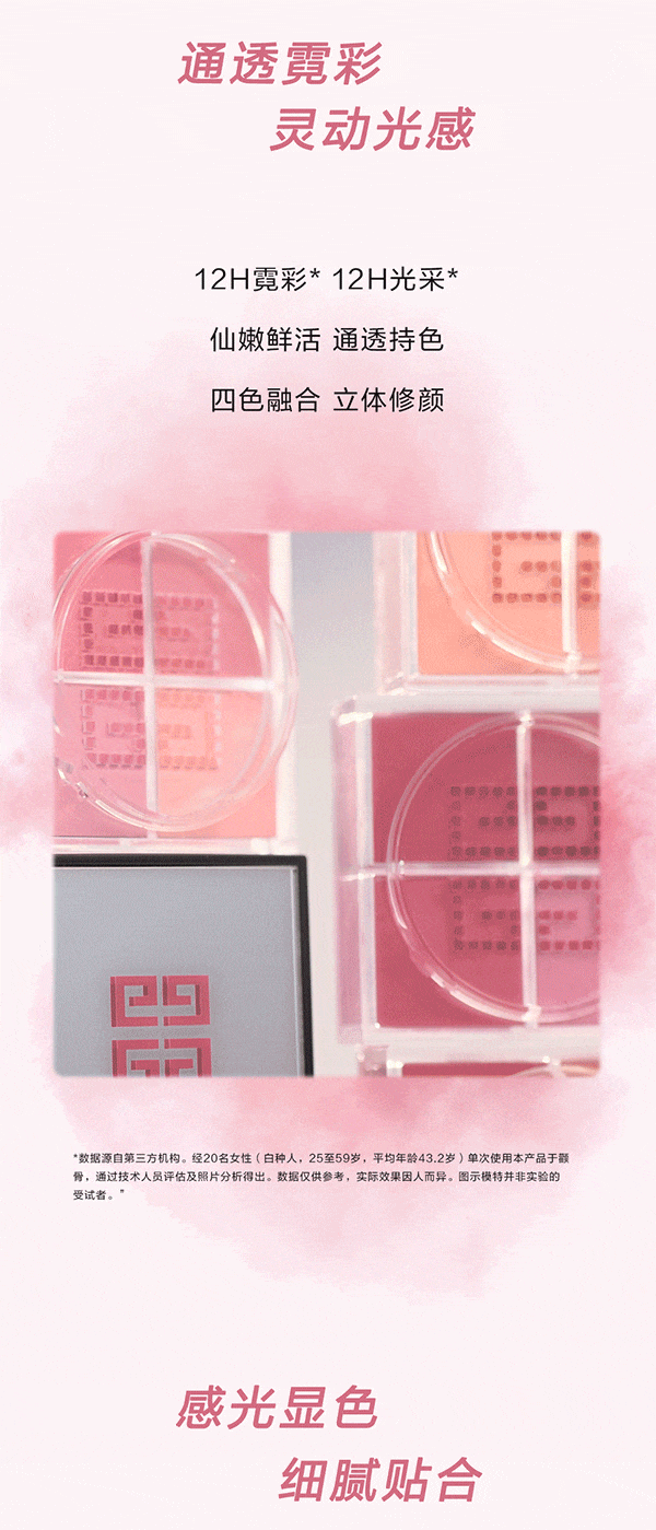 打造由内散发红润感的粉状腮红,通过混合四宫格的4色的光泽呈现立体感,传达双颊的自然精致。Parfums Givenchy 的新标志,四色腮红“ Prism Libre Blush ”,给人一种“潮红的感觉” 。它是一种有限的颜色,可以表现出像秋天一样沉闷的色彩。当您将四种颜色混合并涂抹在您的脸颊上时,它会突出原始皮肤的美丽,增加自然肤色,并使您的脸颊有嚼劲和健康。