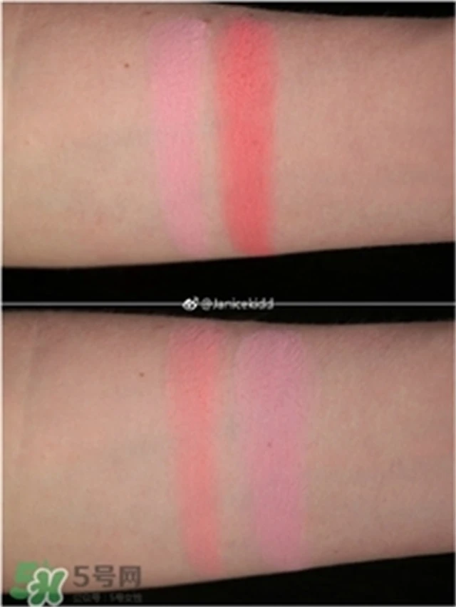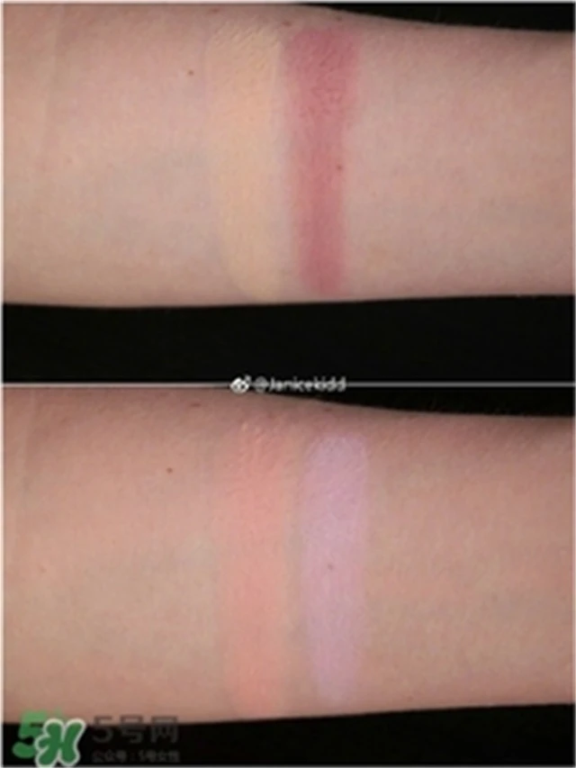易上色,腮红刷放的位置很有心机哟,刷子抓粉力不错,毛质还行但也并非那种特柔特软的。这款刚开始上色近看看不出,远观就可以看到气色有些微的差别,等过会儿它才显色,显色也是自然,有极淡的红润,适合打造裸妆效果和自然效果。如果想要那种讨喜的粉红,得选其他色号哟,例如22,偏粉嫩。